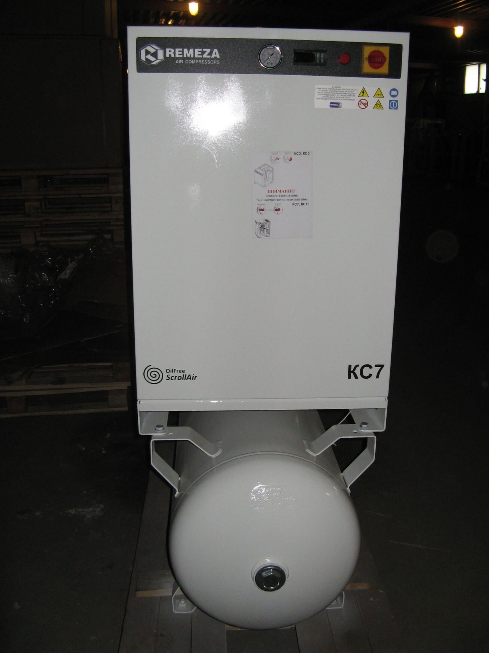 Компрессор спиральный Remeza КС 7-8-270 - компрессор безмасляного типа, обеспечивает полное отсутствие масла в сжатом воздухе при использовании осушителя и воздушных магистральных фильтров высокого качества.