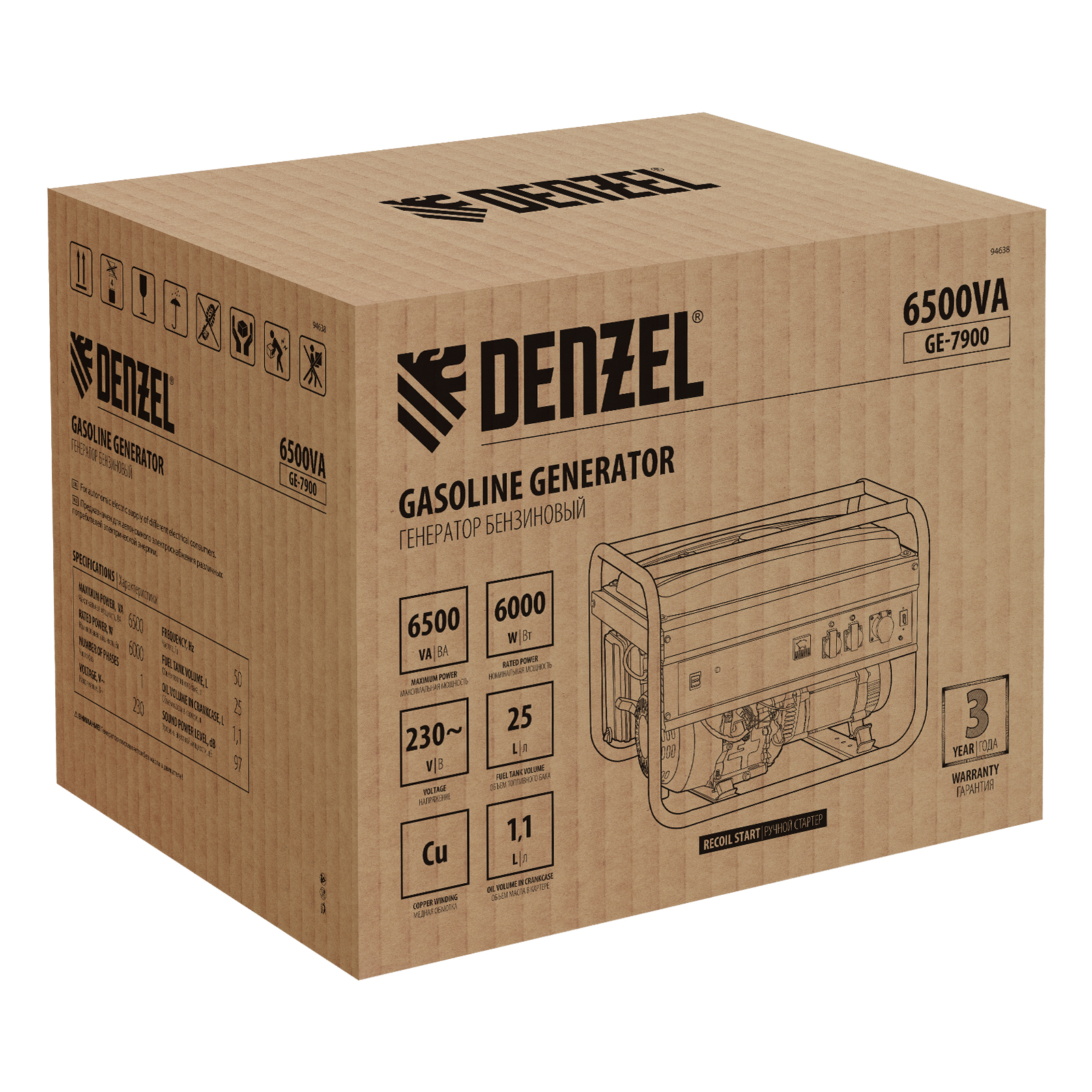 Бензиновый генератор DENZEL GE 7900 94638: характеристики